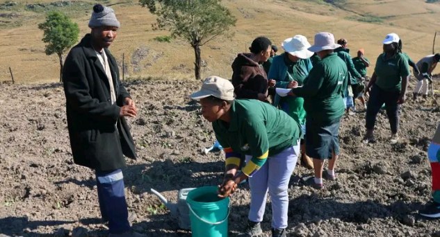 Ms. Poswa, an elderly resident of Ngqwabeni in Ward 07, Flagstaff, who is deeply committed to agricultural work. She was presented with seedlings, groceries, and hands-on assistance. While some participants worked the soil in her garden, others helped fence the area. Ward councillor Mr. Nontswabu also joined in. Grateful for the support, Ms. Poswa expressed her joy, saying her garden lifts her spirits and promising to nurture the seedlings until they produce food.